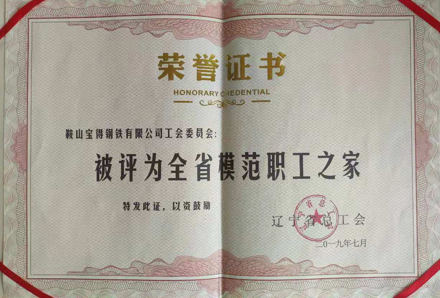 ●2010年度被鞍山市总工会授予"基层工会规范化建设标杆单位 "。