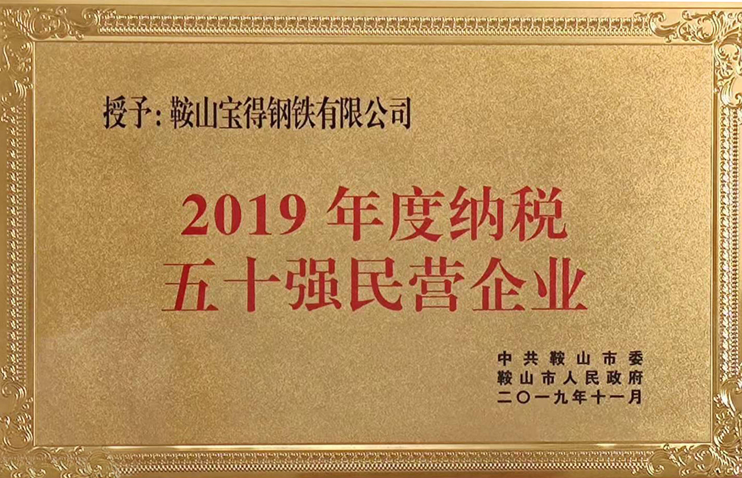 2019年度鞍山市纳税五十强民营企业