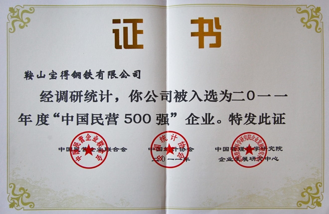 ●2011年中国民营企业500强。