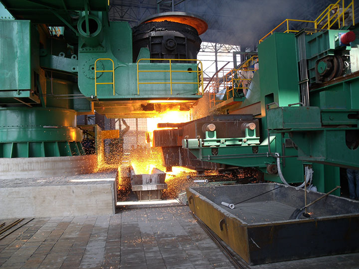 炼钢厂主要生产设备有一座120吨氧气顶吹转炉、一座R12m六机六流大矩形坯连铸机、一座R8m八机八流方坯连铸机。配套设备包括一台3MW蒸汽发电机组、一台静电除尘器、一次除尘金属布袋除尘器、二次除尘和三次除尘。主要产品有230×230连铸坯、230×350连铸坯、320×410连铸坯,年产钢坯量200万吨。