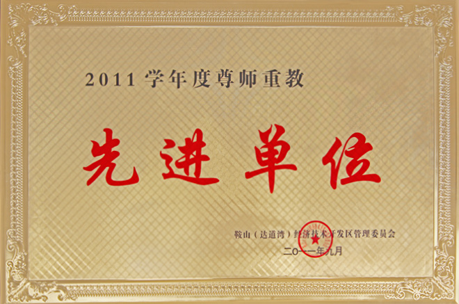 2011年9月,公司被鞍山(达道湾)经济技术开发区管理委员会授予“2011学年度尊师重教先进单位”。