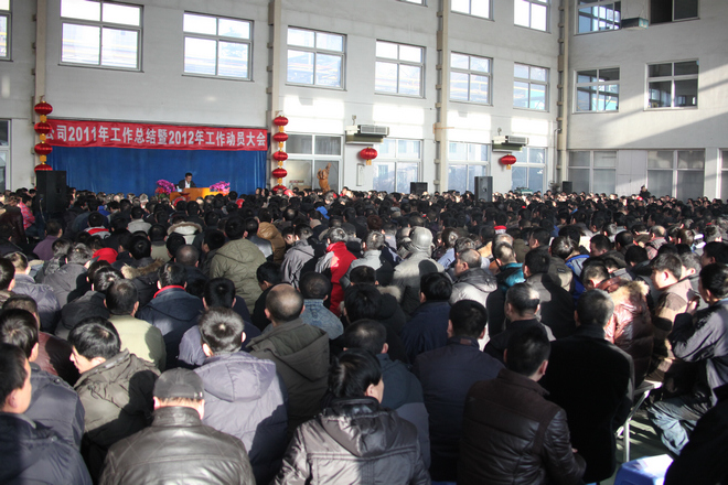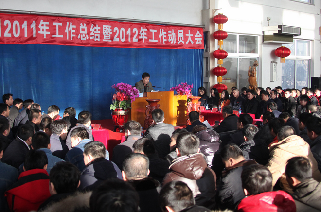 正月初七,公司在网球场召开每年一度的全体员工大会,总经理张铁汉在会上做2011年工作总结暨2012年工作规划。董事长在会上做重要讲话。