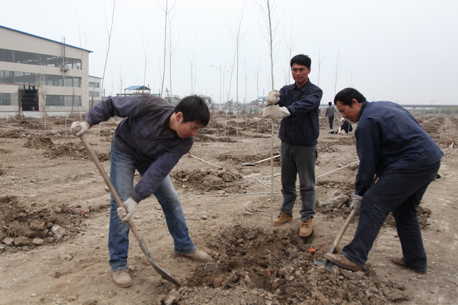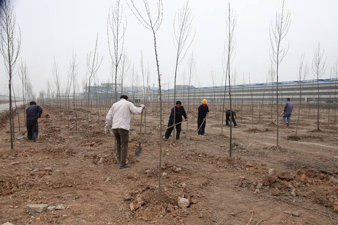 4月10日到29日,公司开展春季植树活动。基建队60余人,烧结厂球团车间30人,在厂区内植树近30000棵。