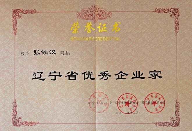 总经理张铁汉荣获“辽宁省优秀企业家”称号