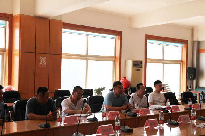 2023年7月5日鞍山市应急局局长李志鸿(右三)、经开区党工委委员、管委会副主任王昕(左二)、经开区应急办主任方毅(左三)等市、区政府各级领导莅临宝得公司走访调研,总经理张铁汉(右一)、常务副总经理张维达等主要领导陪同。