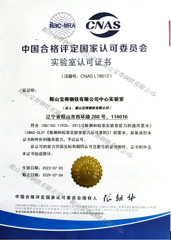 宝得公司中心实验室于2021年9月启动CNAS认可计划,严格按照ISO/IEC 17025搭建体系,在2022年1月1日正式发布运行,2023年4月15-16日顺利通过CNAS专家现场评审,2023年7月5日正式获得认可证书。体系文件从编制、运行、提交申请、文件审查、现场审核、整改,整个实验室持续不断地自我完善和提升,实现了量变到质变的飞跃,最终获得中国合格评定国家认可委员会的评定批准,成功跻身国家认可实验室行列。